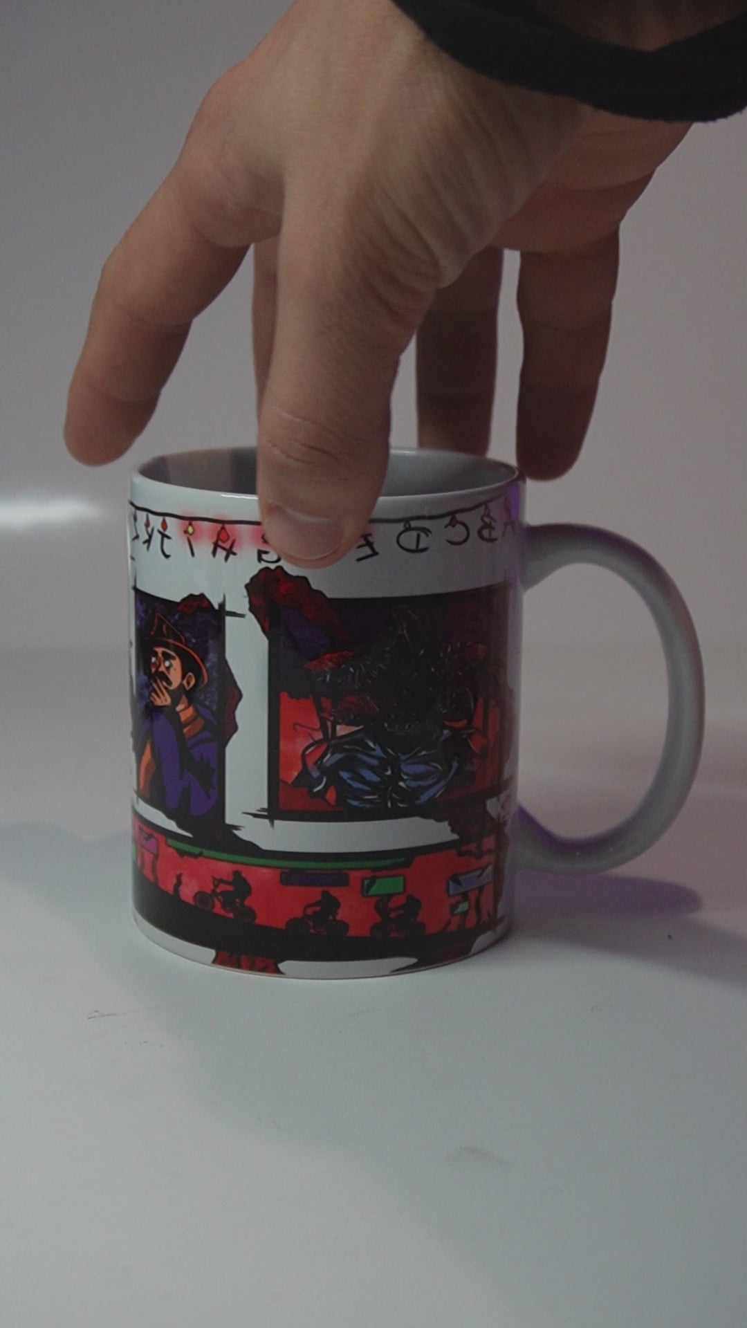 Tazza in ceramica decorata con un’illustrazione originale realizzata da LeezyArt. Un design artistico dallo stile rétro e misterioso, ideale per chi ama atmosfere anni ’80 e look creativi ricchi di personalità . Opera originale non affiliata né collegata a franchise o produzioni ufficiali.